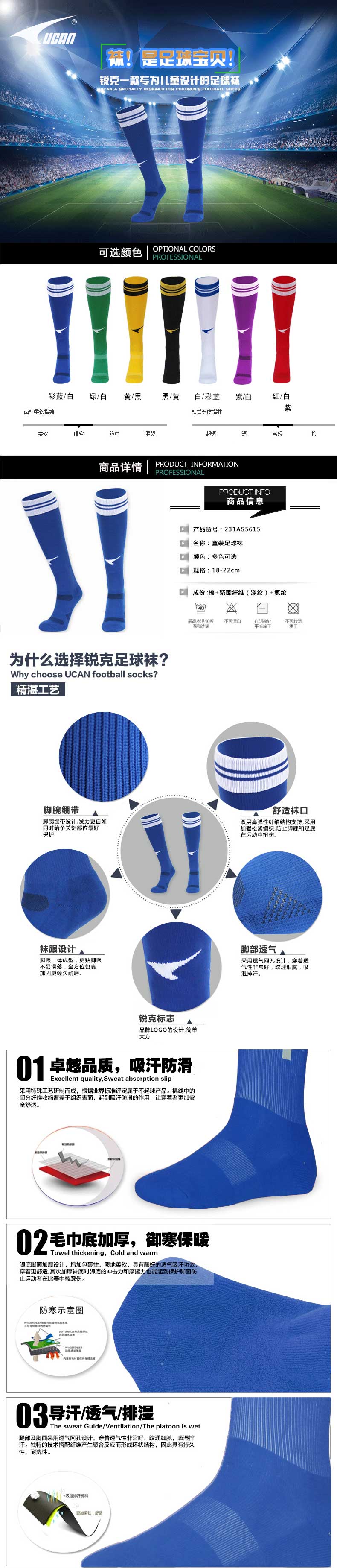 UCAN 銳克 專業足球襪 AS5615